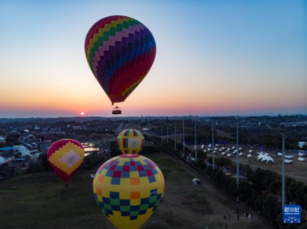 2月16日,游客在四川省内江市市中区川南大草原景区体验乘坐热气球。