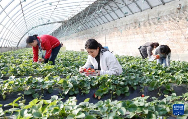2月17日,游客在河北省邢台市南和区农业嘉年华景区体验采摘。