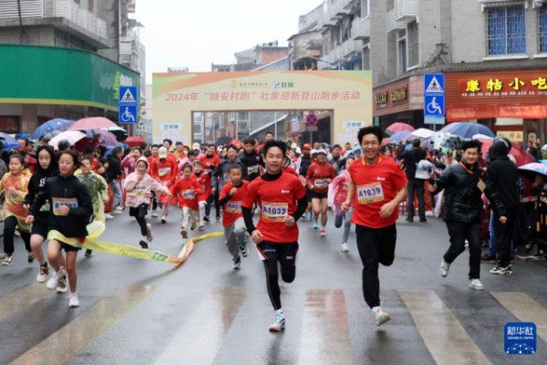 2月17日,在广西柳州市融安县长安镇,跑步爱好者参加长跑比赛。