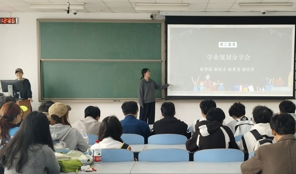 随后,范小涵明确了新学期班级整体学习与成长目标,号召全体同学以崭新面貌拥抱校园生活。活动进入学业规划分享环节,班级优秀学生代表徐胜男上台分享经验,围绕英语四六级备考技巧、科创竞赛参与方法、日常时间管理策略等同学们关心的内容,结合自身实际细致讲解,为大家梳理学习思路、明晰努力方向。分享结束后,班级以小组为单位开展热烈讨论,同学们结合自身情况,依次交流新学期学习计划、备考安排与个人目标,互相借鉴经验、探讨学习困惑,在真诚交流中凝聚共识、彼此鼓励,营造了互帮互助、共同进步的良好氛围。
