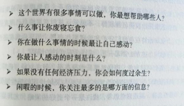 关于第一个问题,我们的人生理想和目标,即努力的方向。《美好人生指南》的作者提出了6条寻找人生使命的建议(见图)。