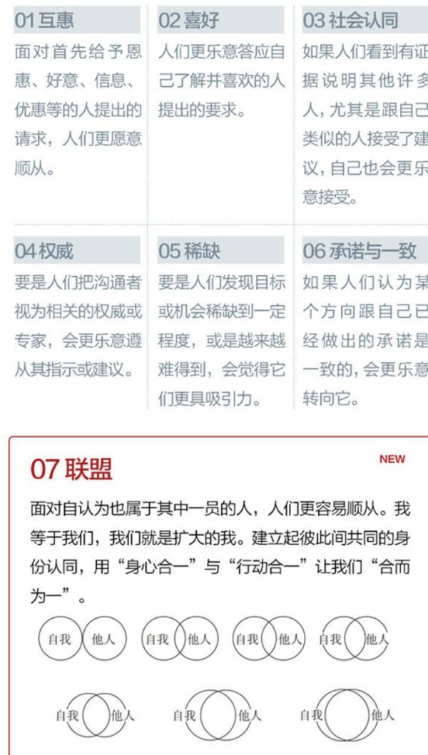 而成为有影响力的人,也是获得世间福报的路径载体,成为有影响力的人有七大武器:互惠、喜好、社会认同、权威、稀缺、承诺一致和联盟,