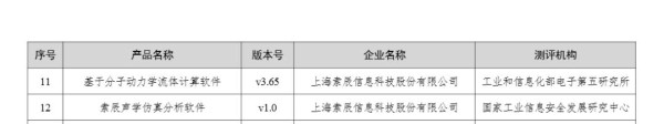 近日,工业和信息化部发布“拟通过首版次软件评测产品名单公示”,上海索辰信息科技股份有限公司(以下简称“索辰科技”)自主研发的基于分子动力学流体计算软件与索辰声学仿真分析软件成功入选。