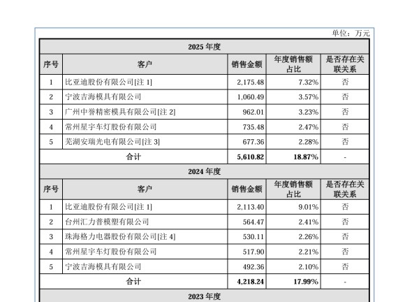 直接客户方面,下游包括了比亚迪和星宇股份: