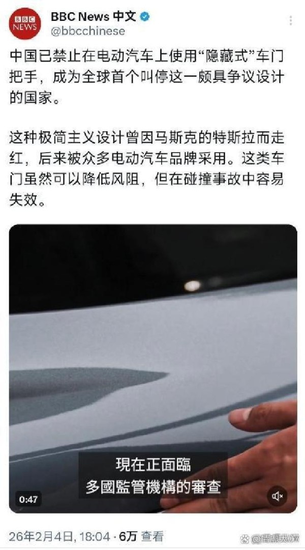 隐藏式门把手,终于被叫停了。