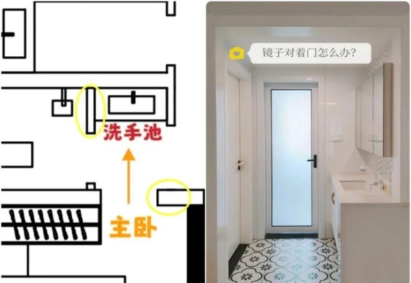 ▲老想法:大家都觉得卫生间是藏脏东西的地方,要是卫生间的门框比卧室门还高,按老风水的说法,脏东西就会跑到卧室里,让住的人身体不好、运气也变差。