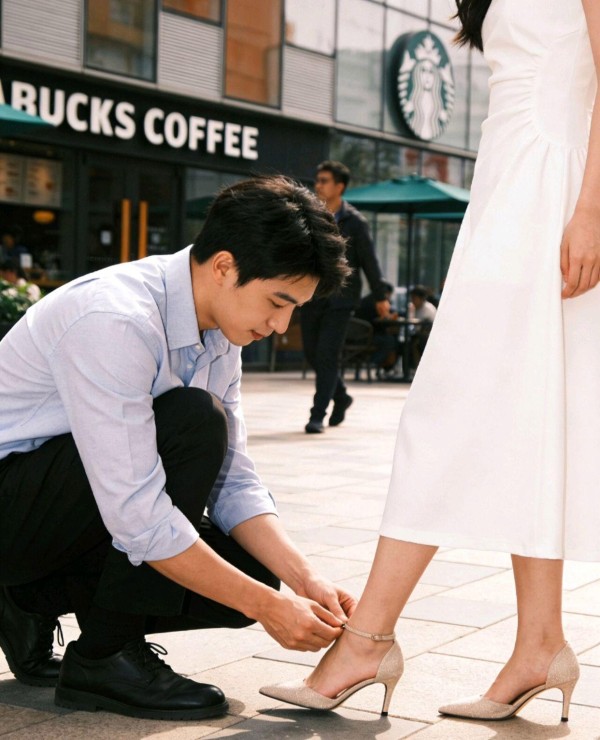 第一次约会在国贸商城的咖啡店,我穿了双新高跟鞋,磨得脚后跟疼。李默去买创可贴,回来时蹲在地上,捧着我的脚说:“鞋里可能有沙子,我看看。”