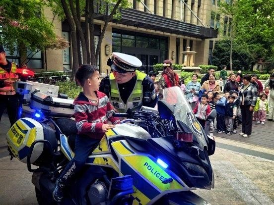 “平时只能在马路上看见,感觉超帅气!这次居然可以近距离体验!”活动现场的警用摩托车,让孩子们兴奋不已。大家近距离触摸、参观警用摩托车,好奇地观察警灯、警笛等执法装备,直观感受交通安全执法工作,牢牢记住骑行安全要点。